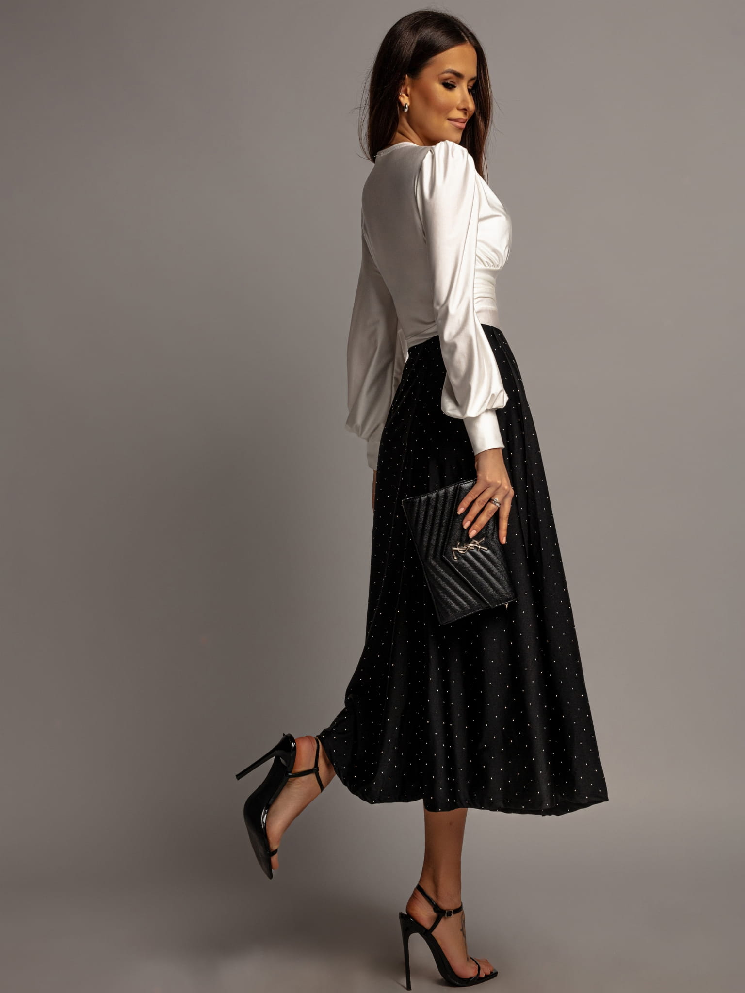 Spódnica midi rozkloszowana z cyrkoniami czarna
