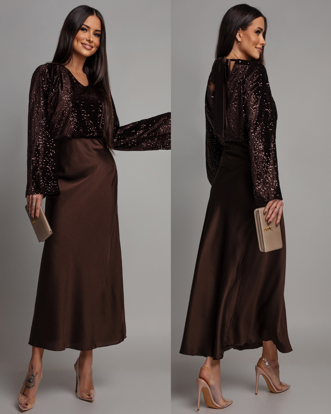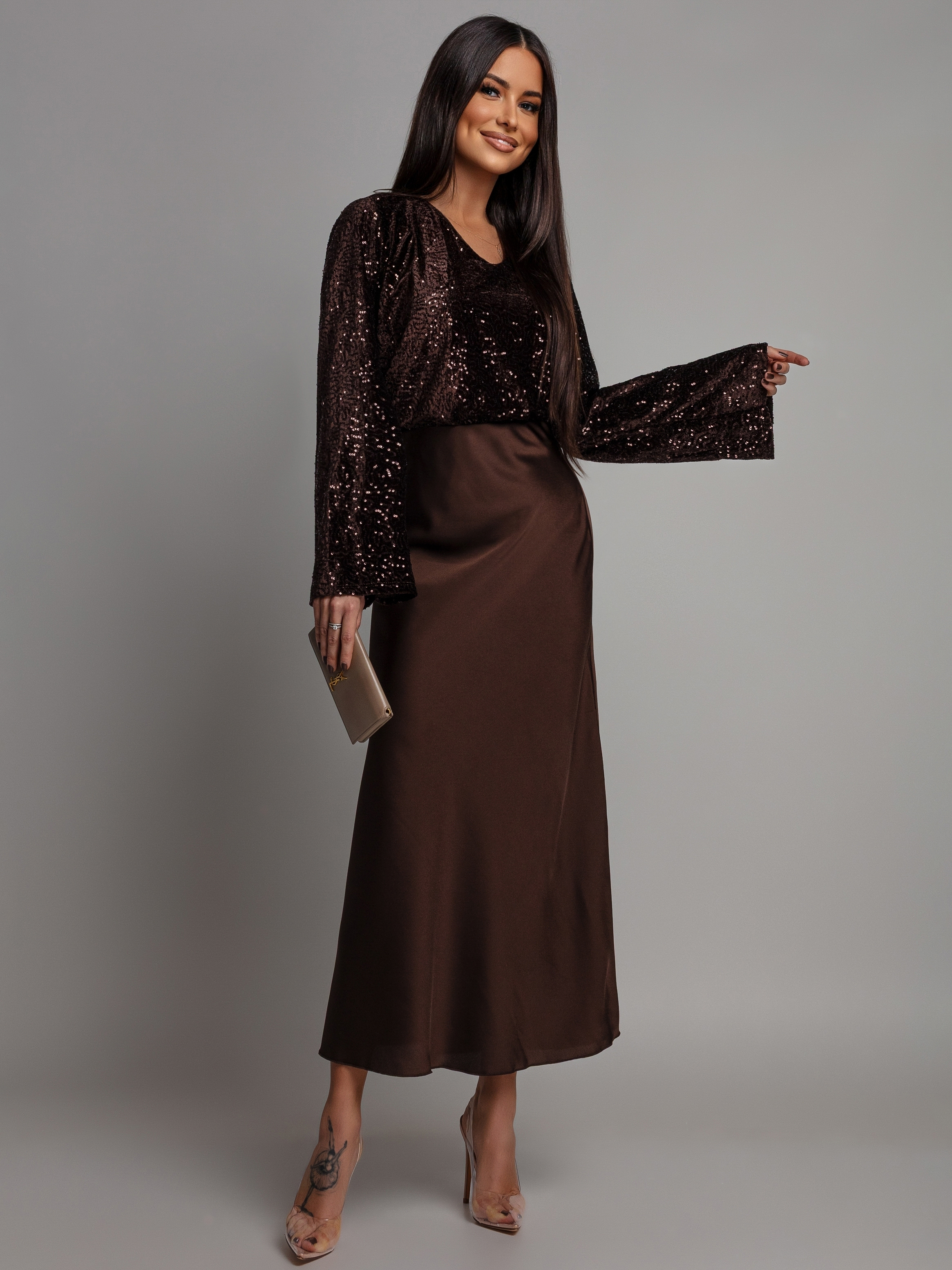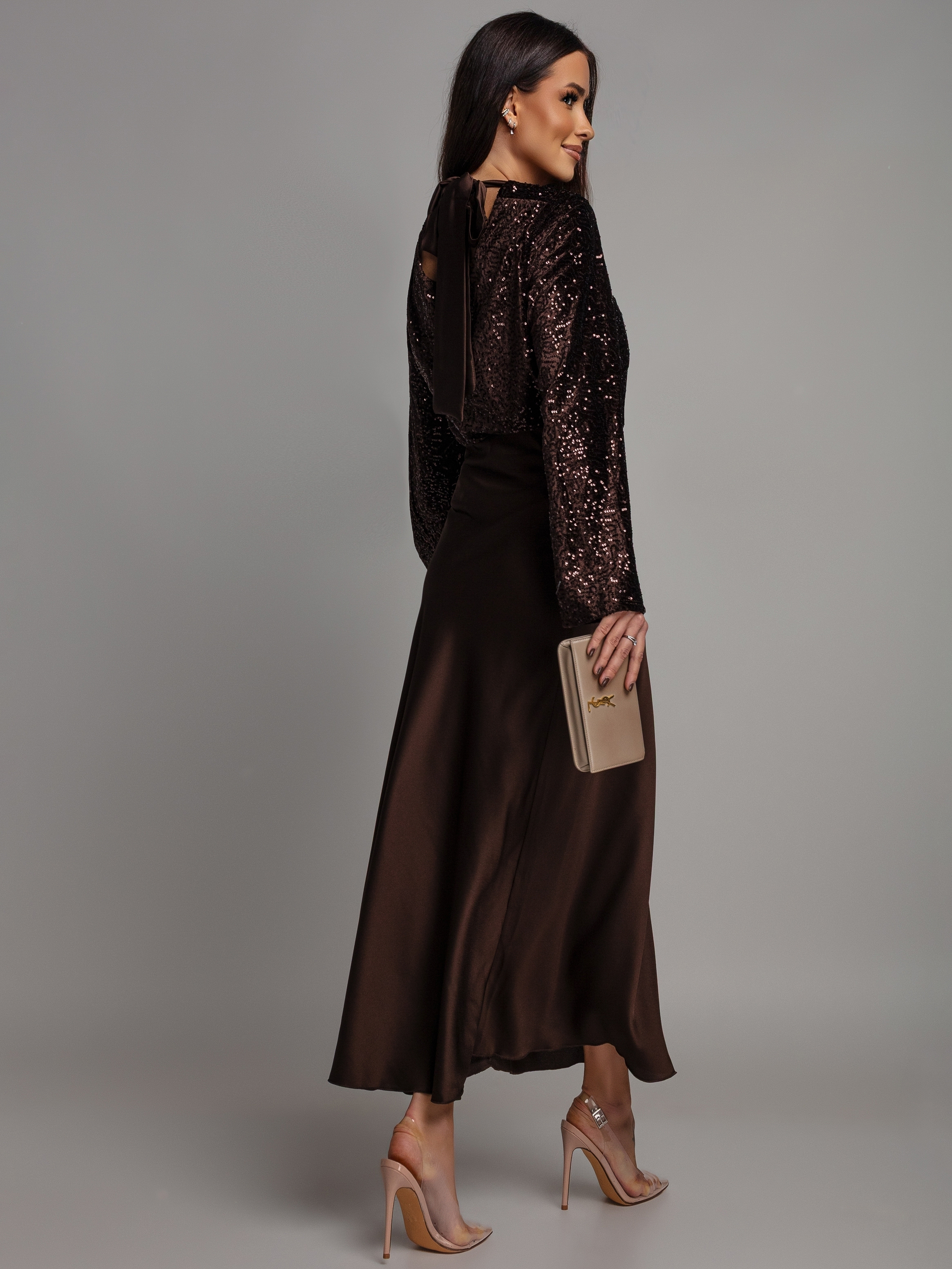 Spódnica midi satynowa czekoladowa
