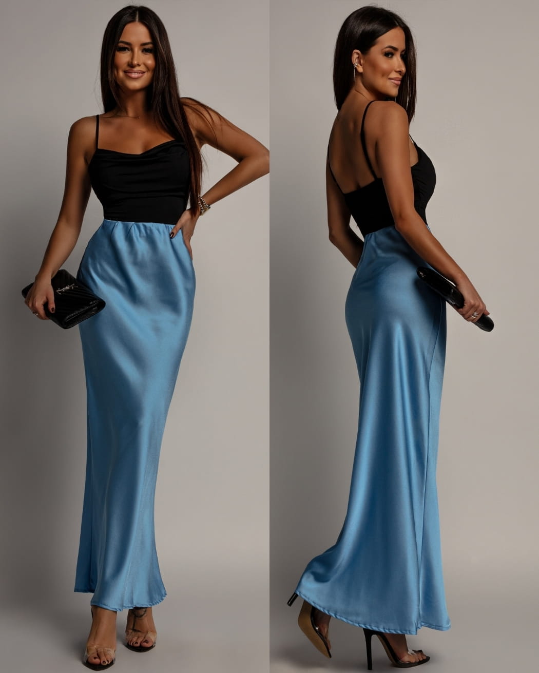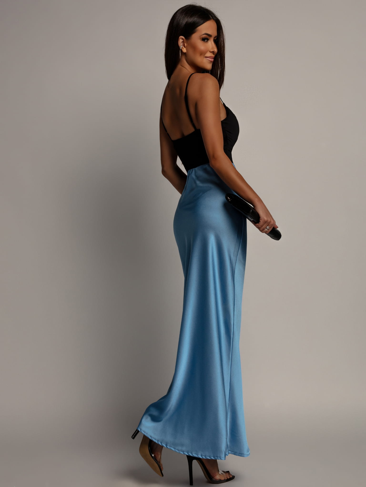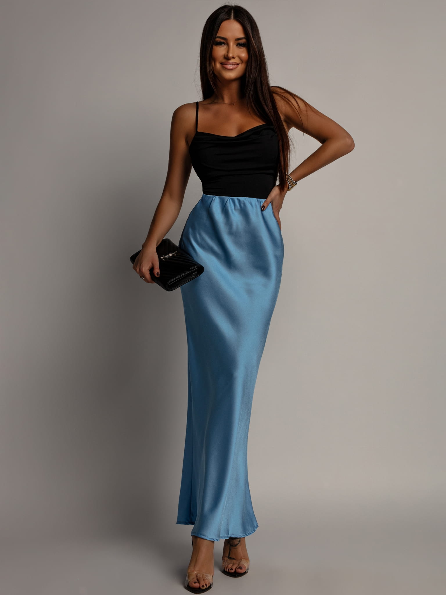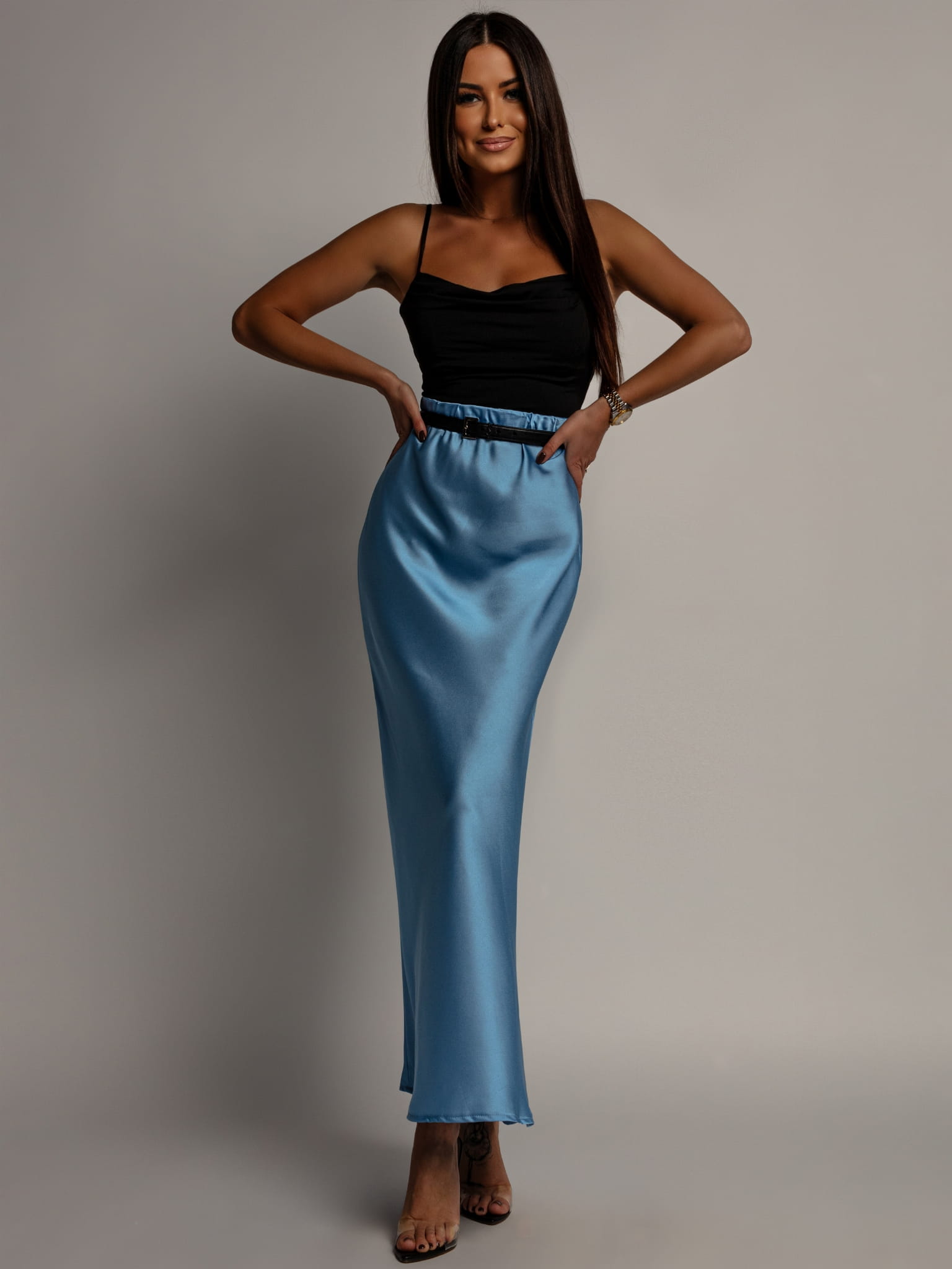 Spódnica midi v2 satynowa niebieska