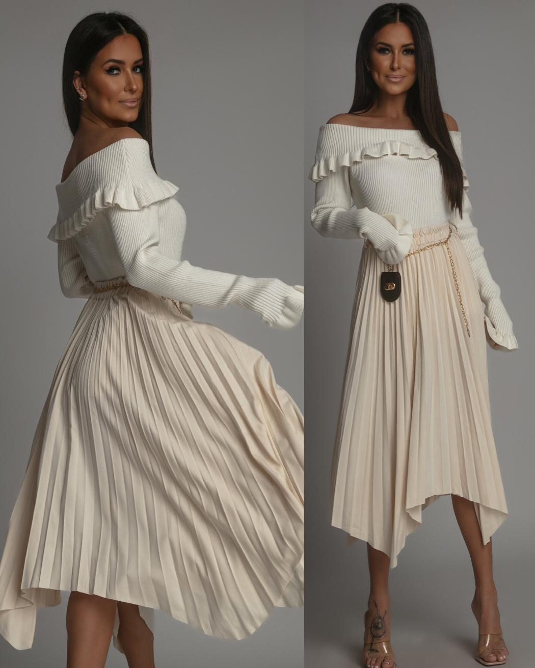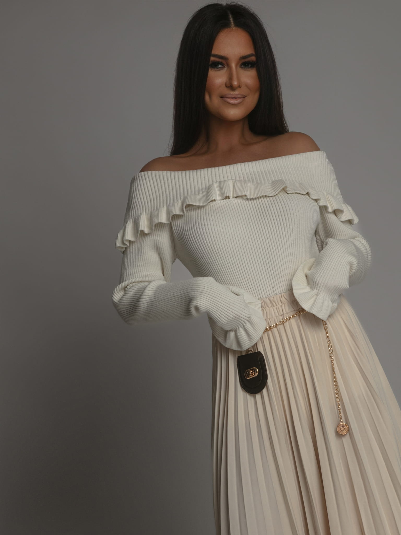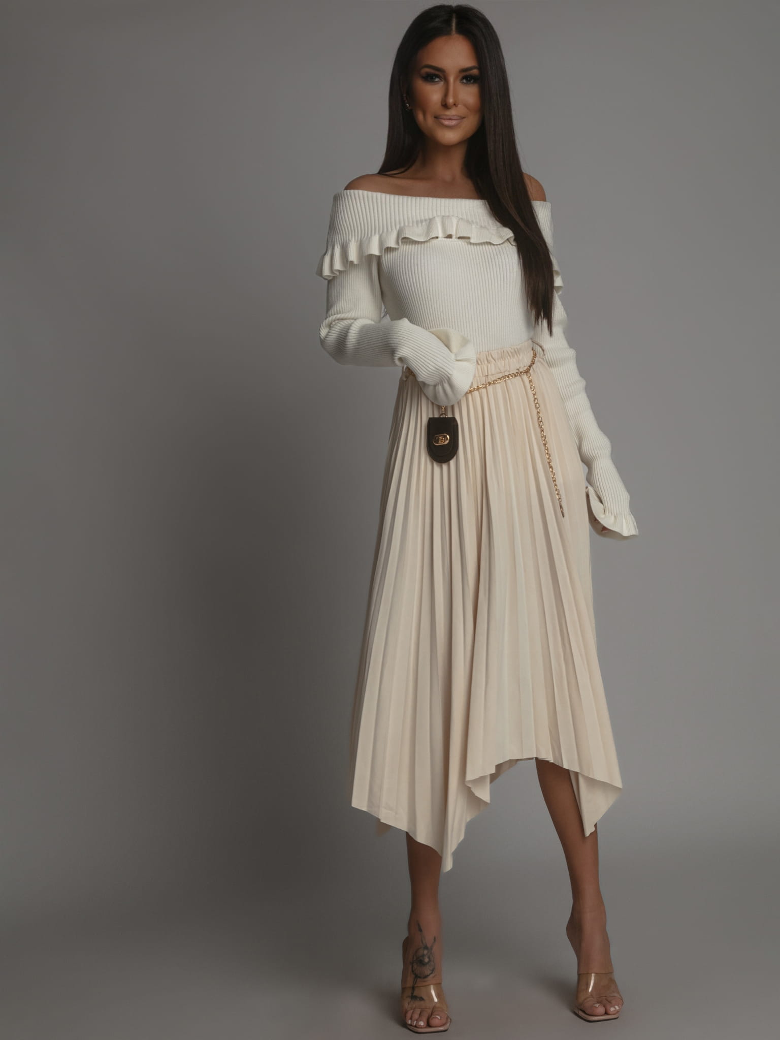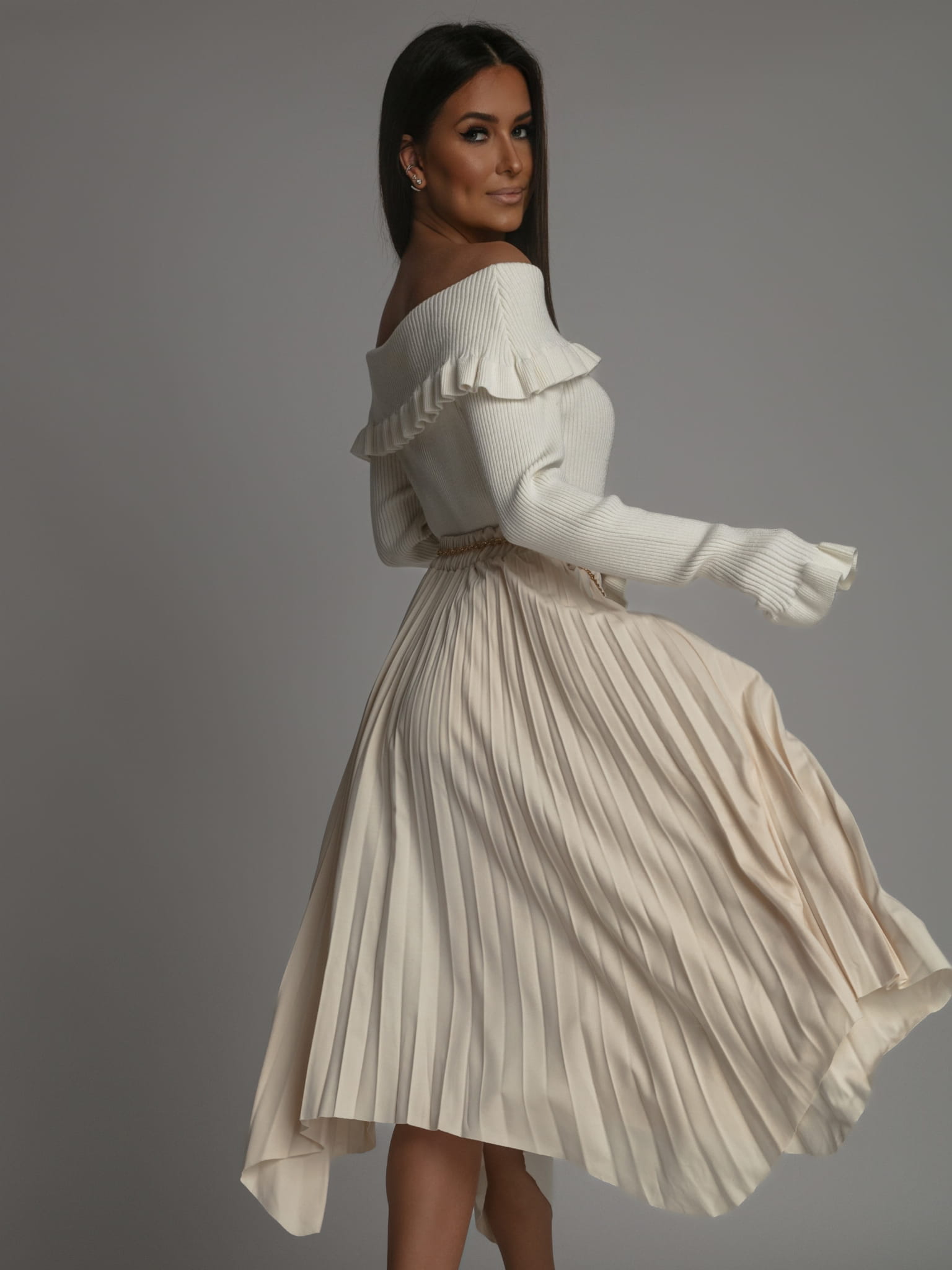 Spódnica z ozdobnym paseczkiem plisowana ecru