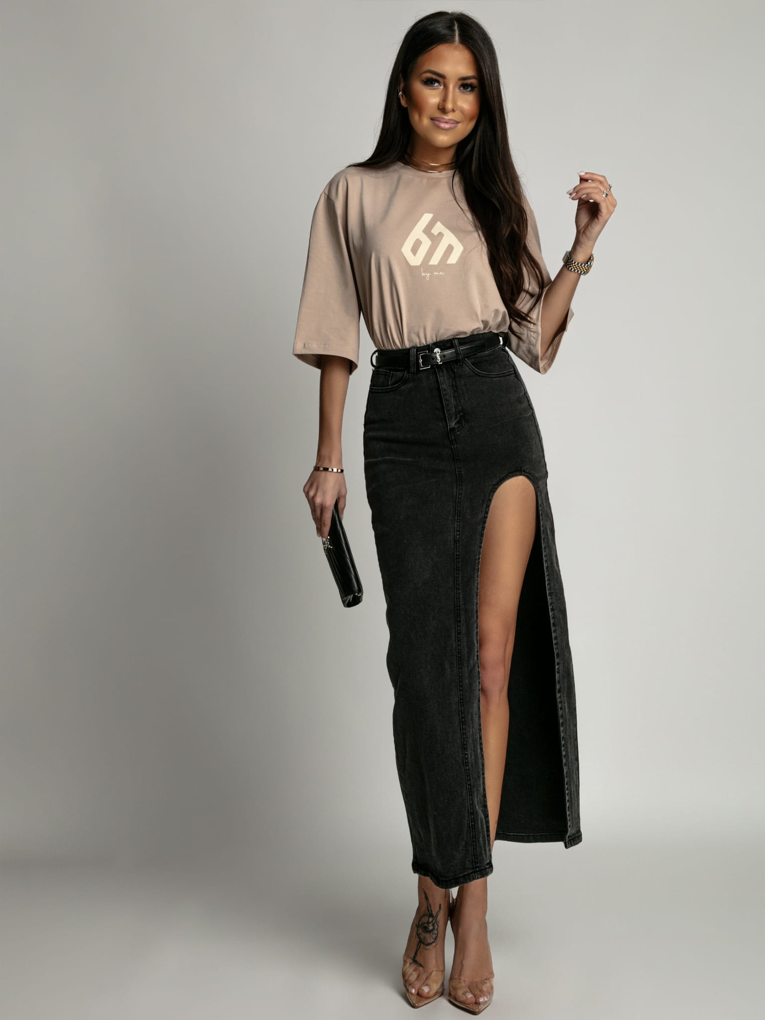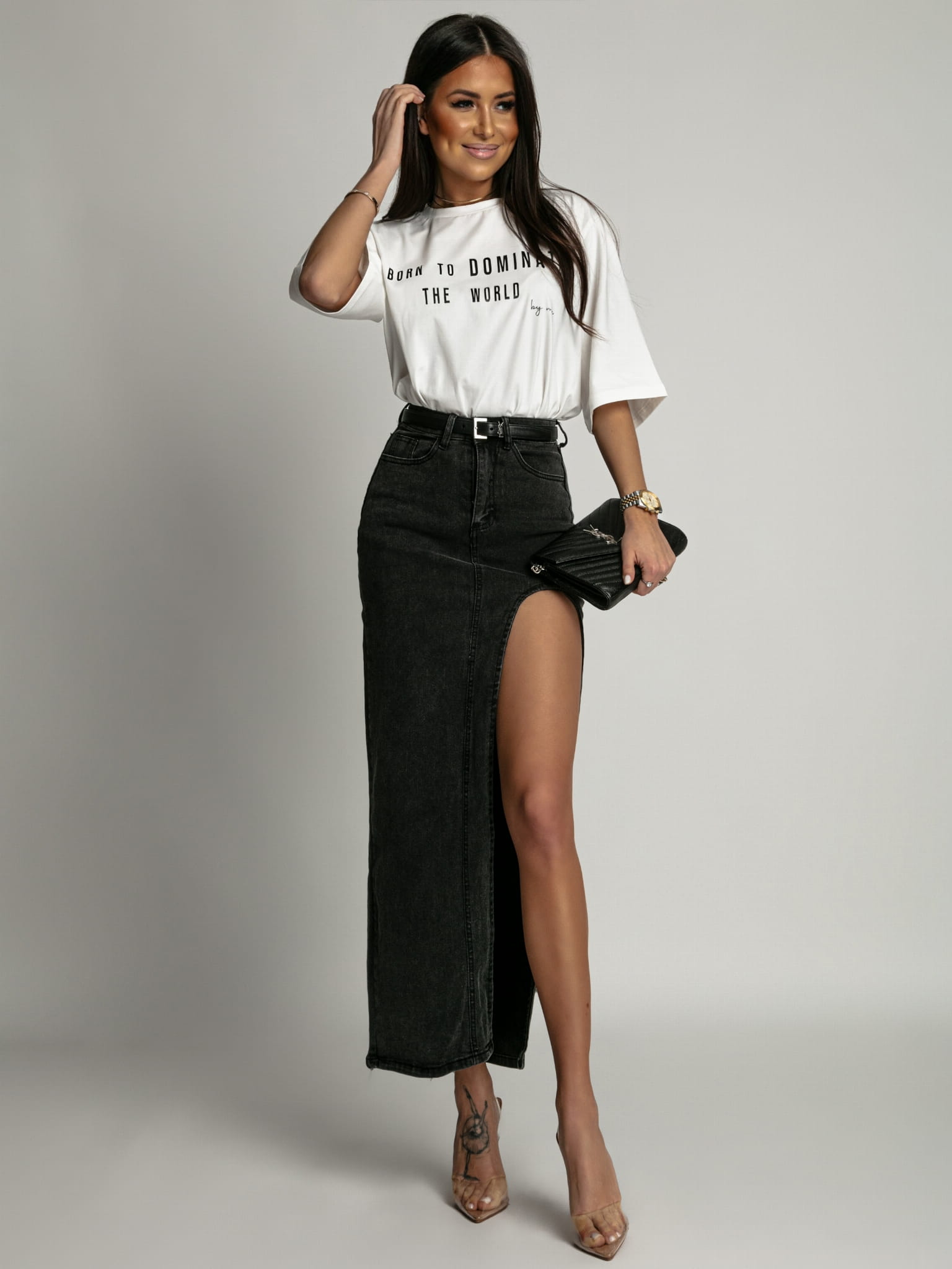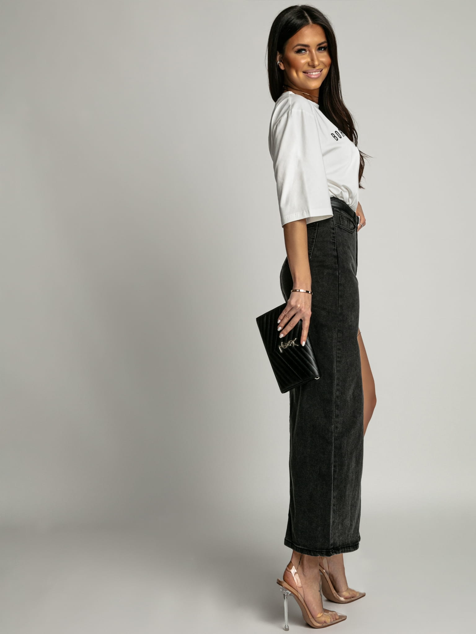 Spódnica z rozcięciem czarna PREMIUM