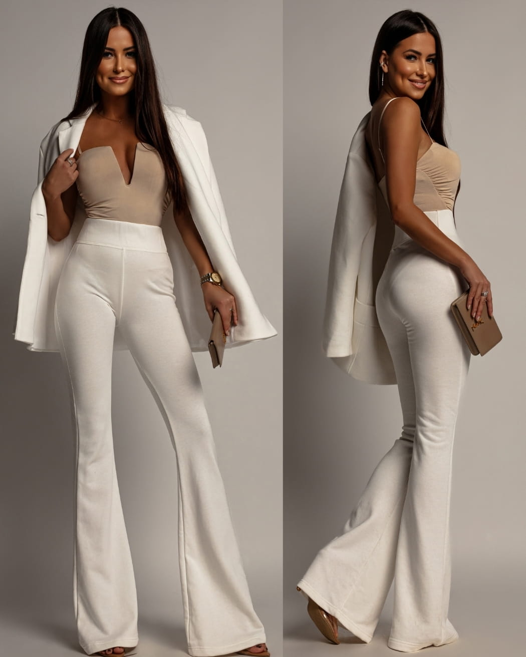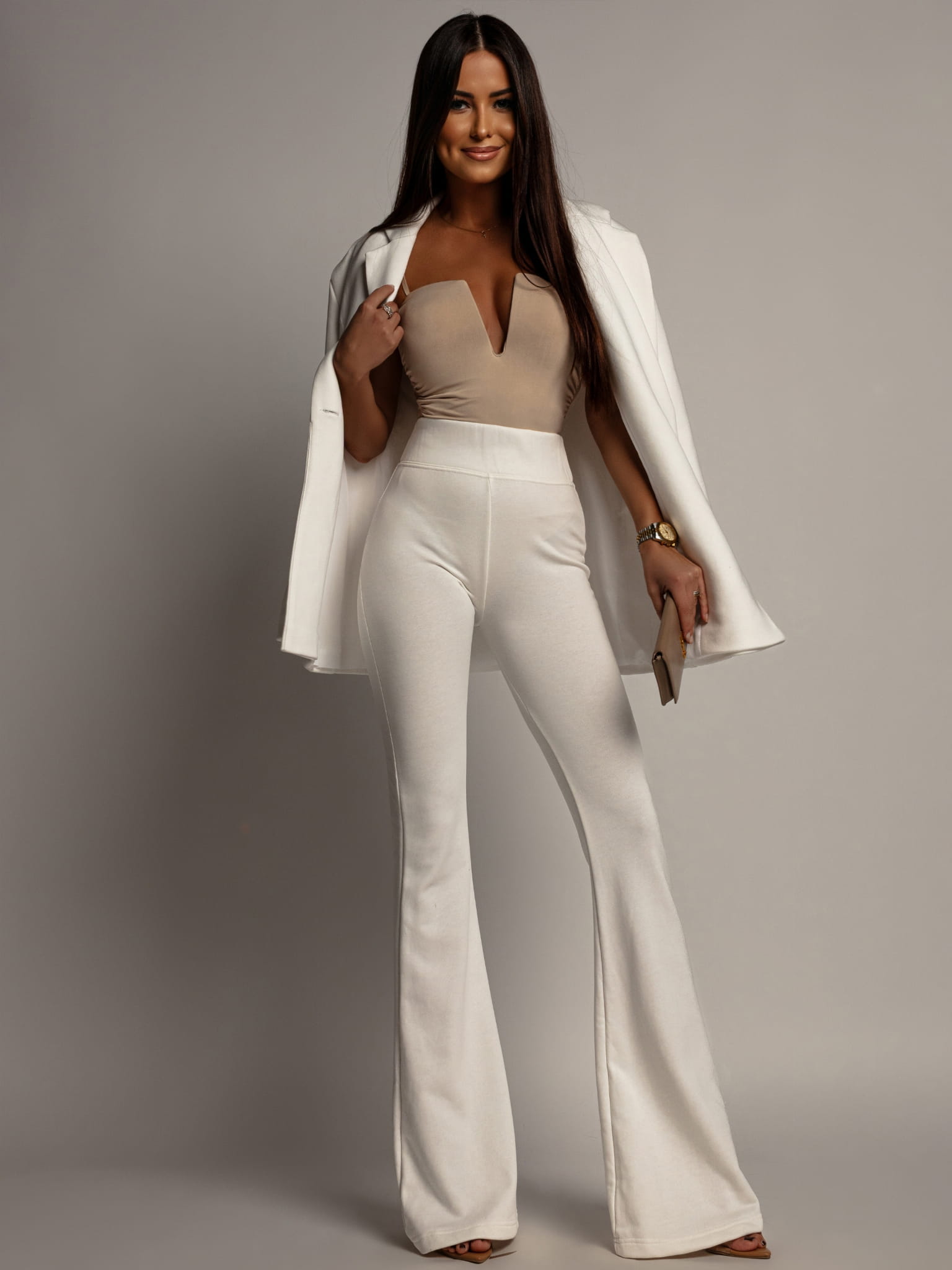 Spodnie dzwony z wysokim stanem białe PREMIUM Polska produkcja