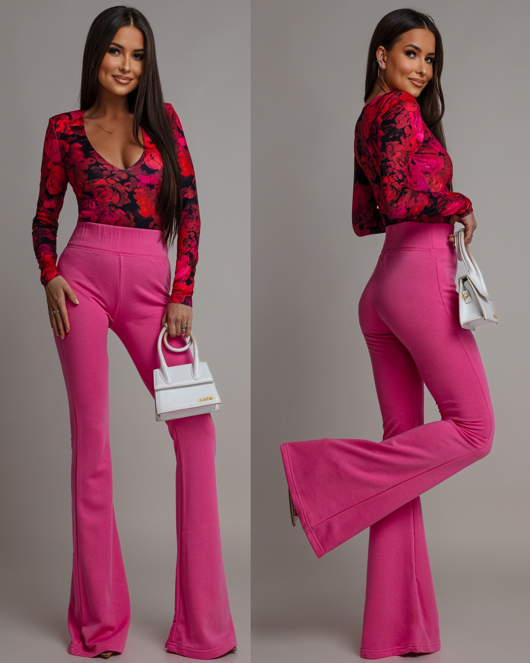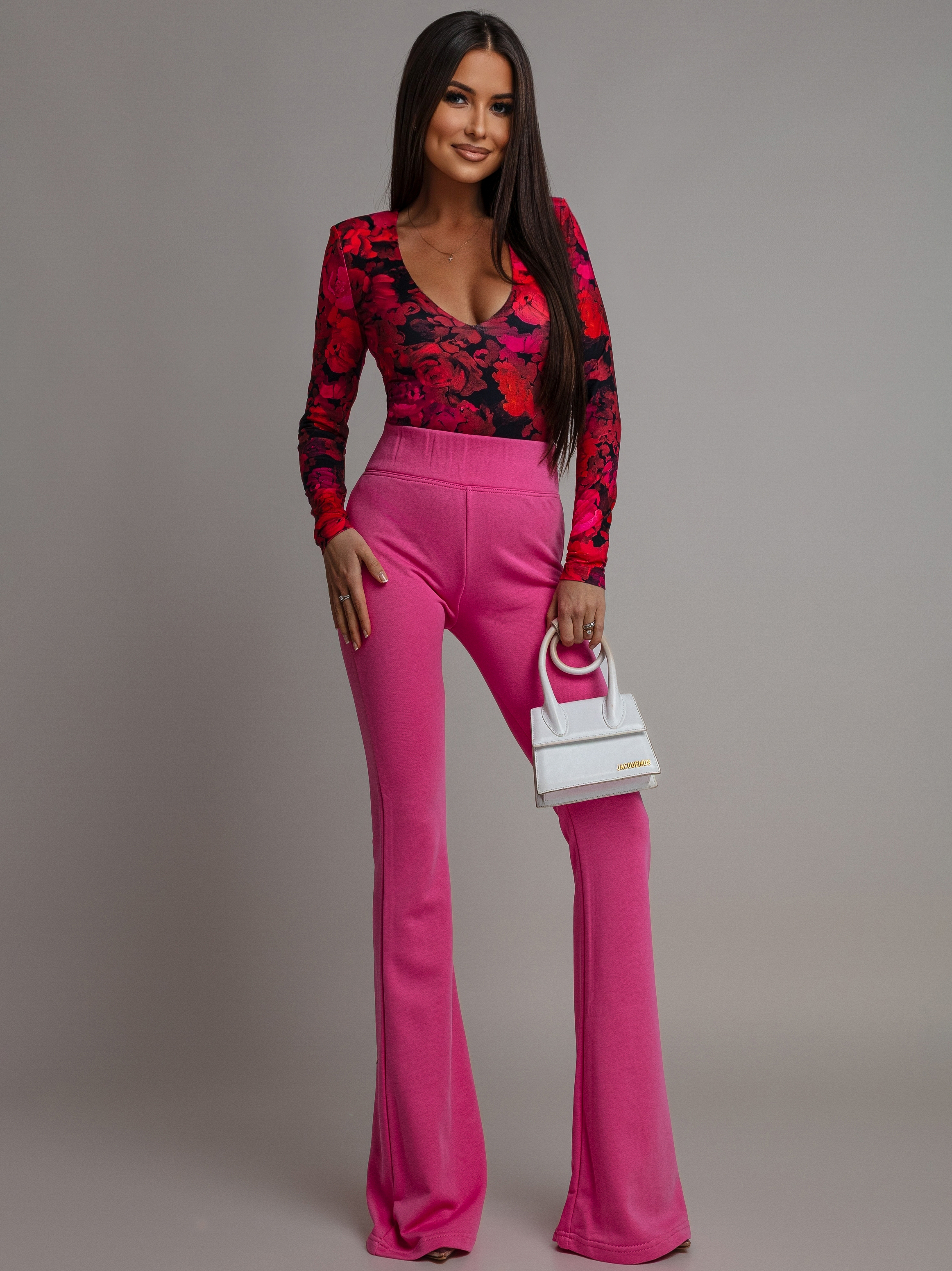Spodnie dzwony z wysokim stanem róż PREMIUM Polska produkcja