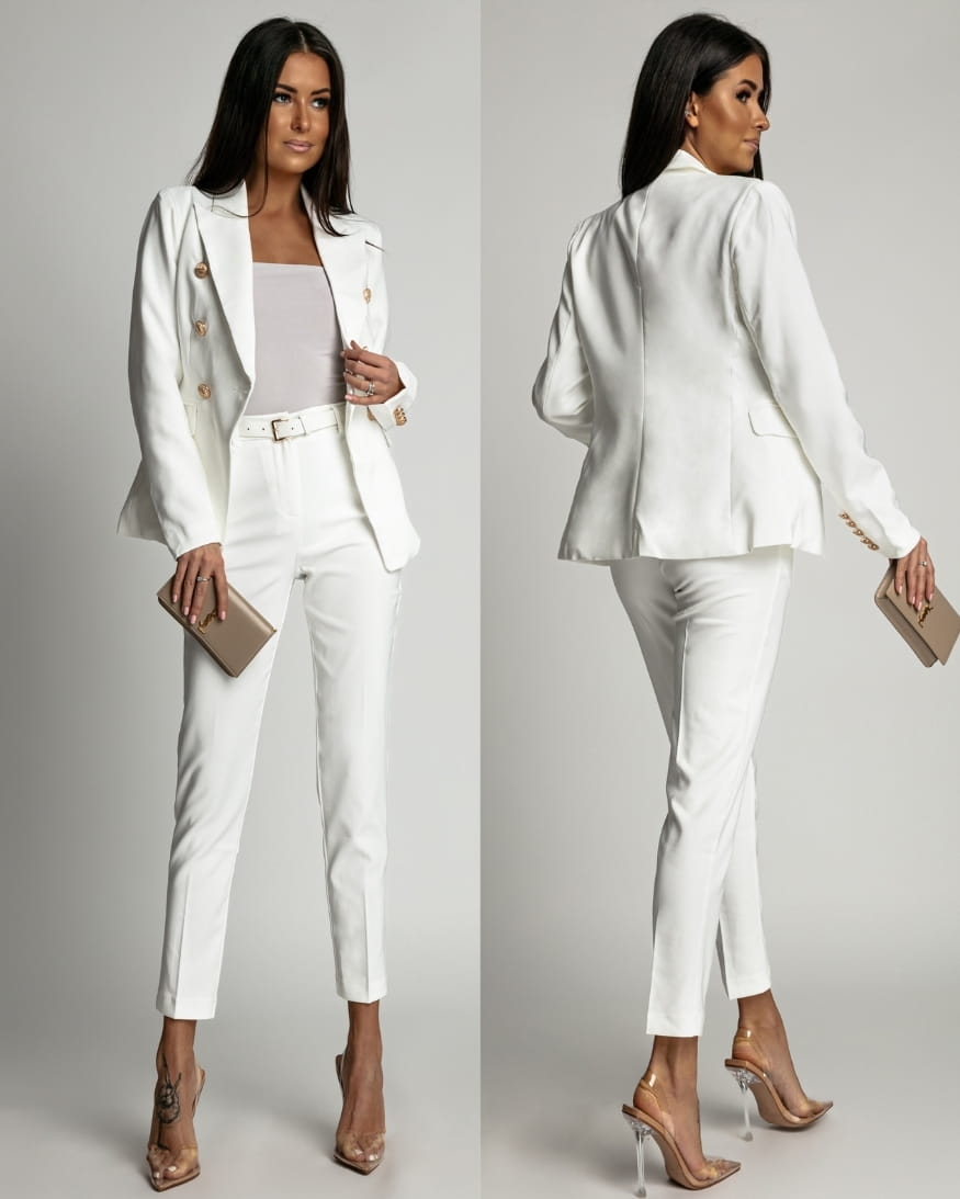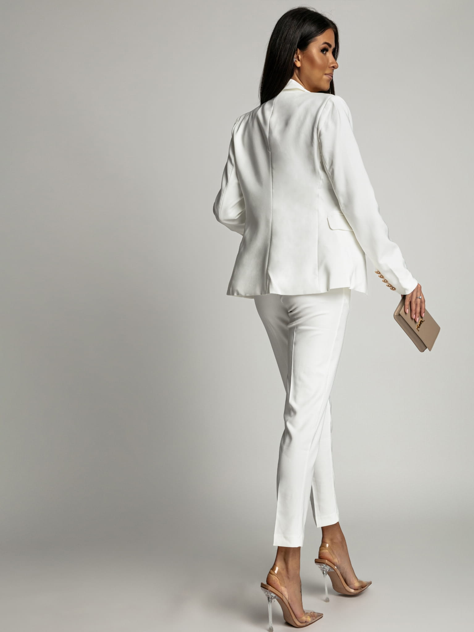Spodnie eleganckie w kant z paskiem białe PREMIUM