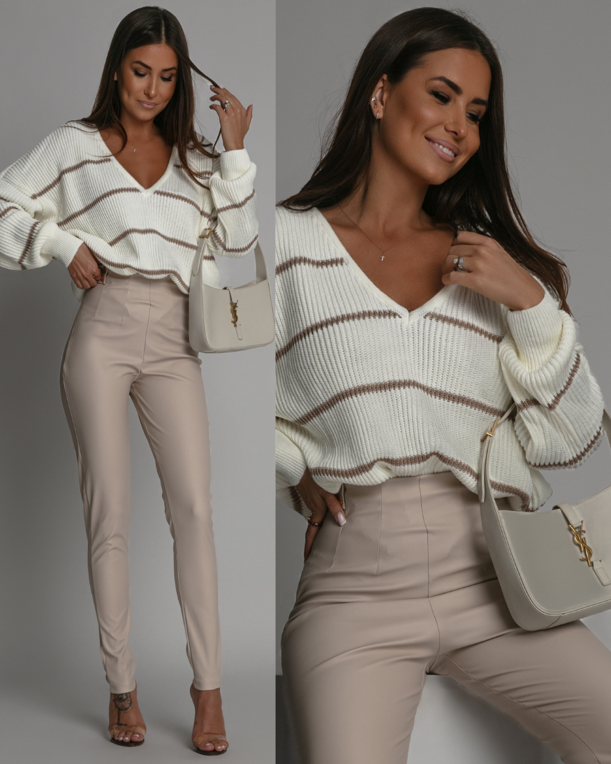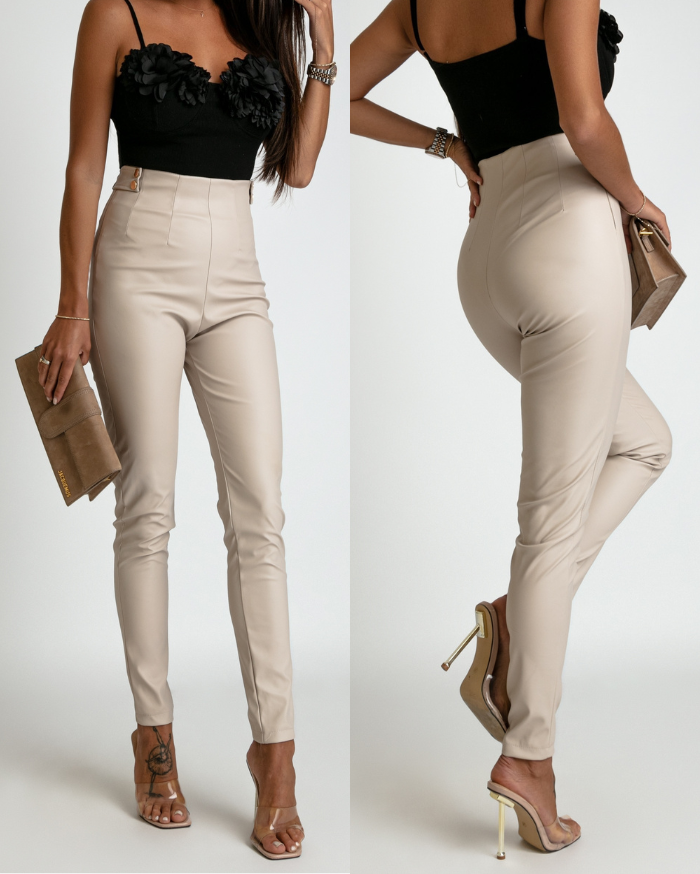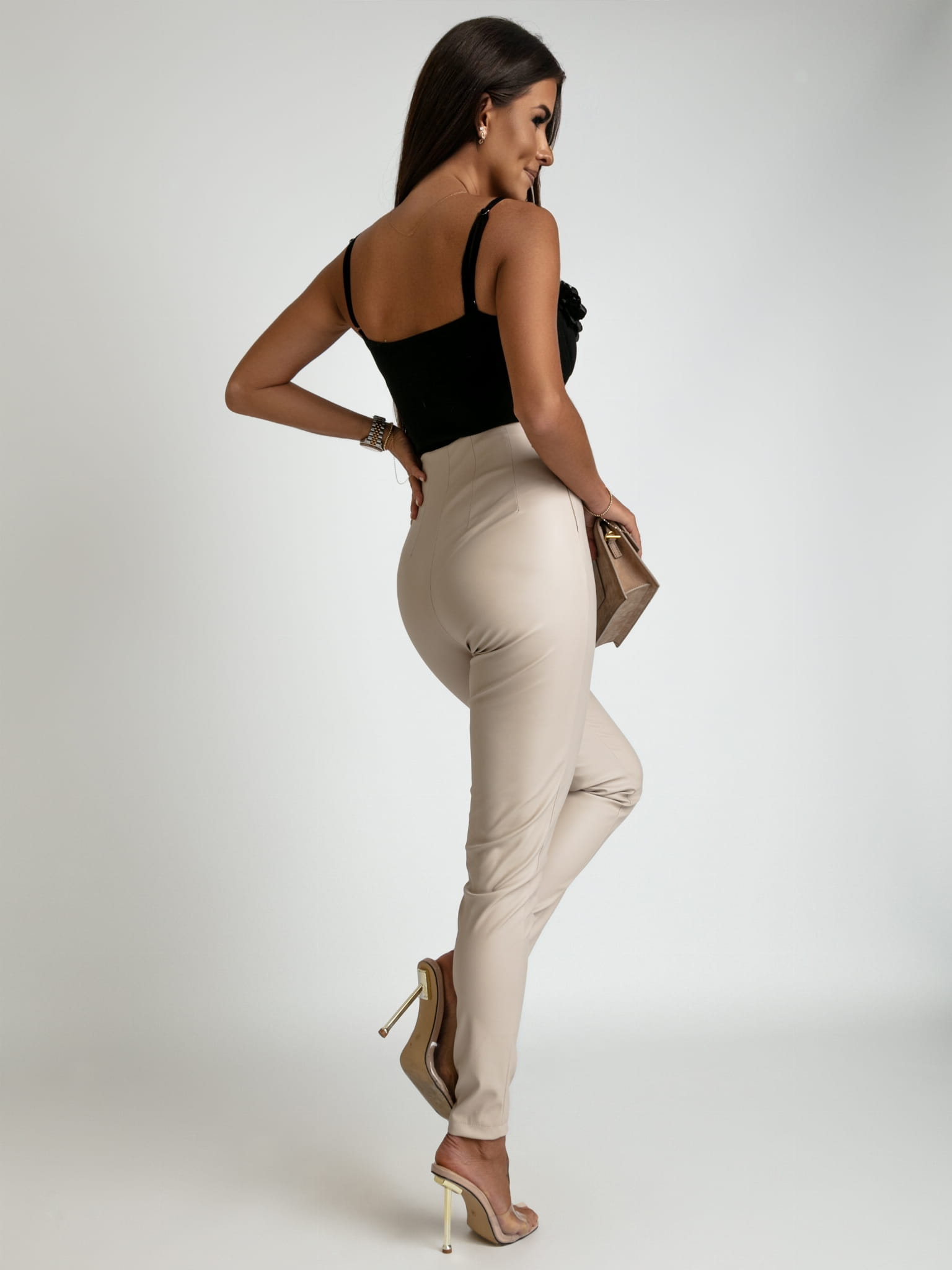Spodnie woskowane z guzikami ozdobnymi beżowe PREMIUM
