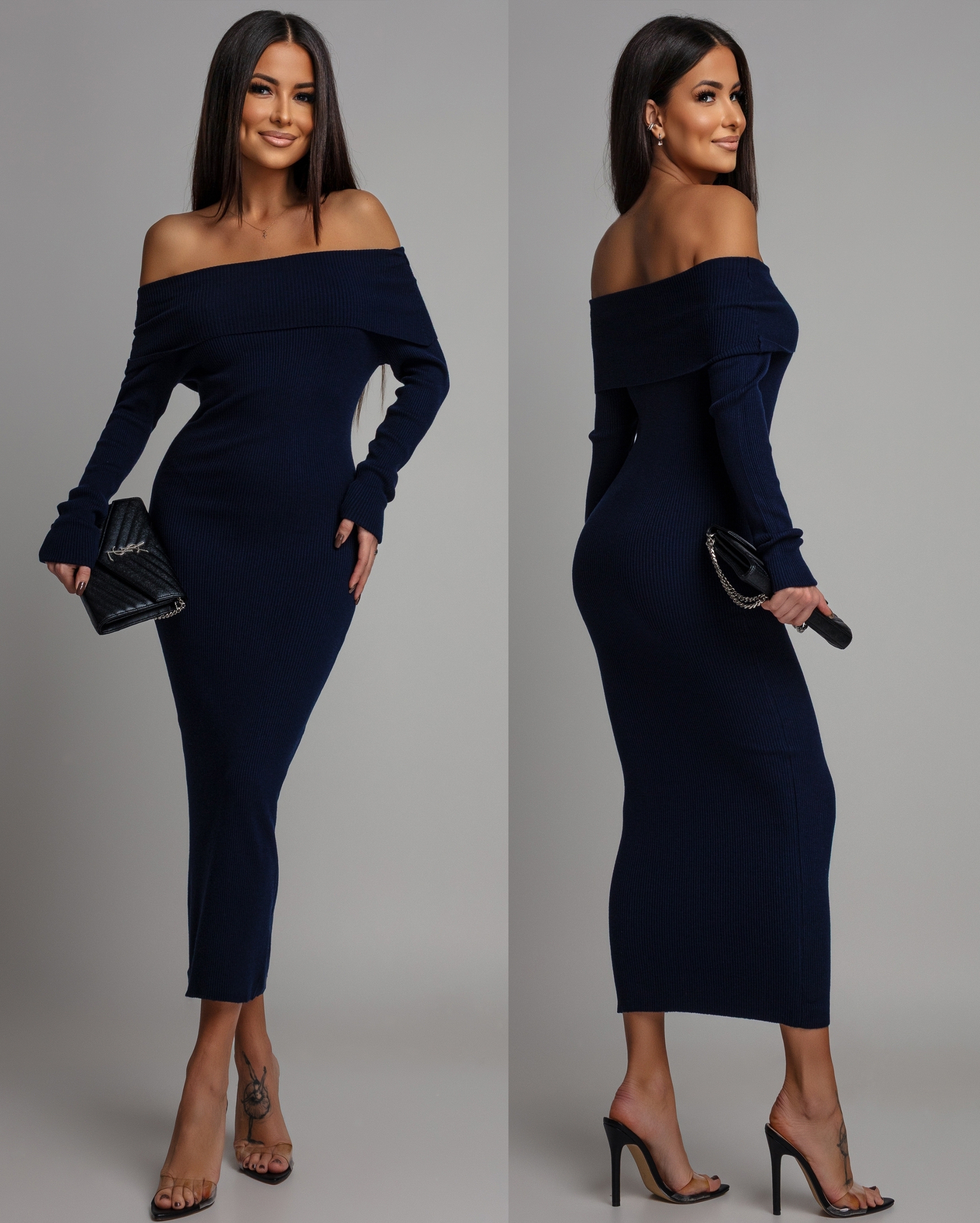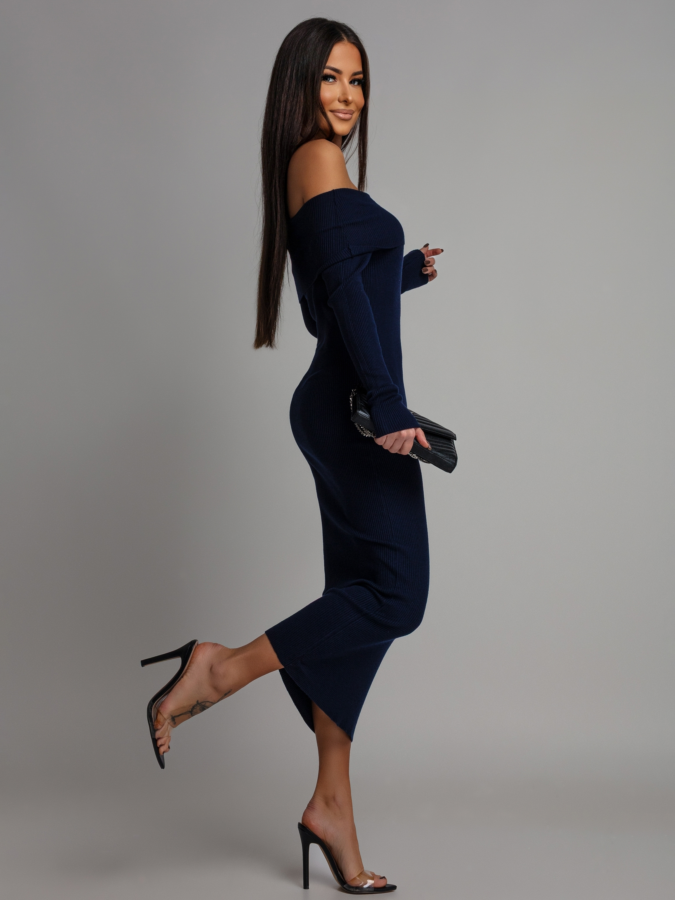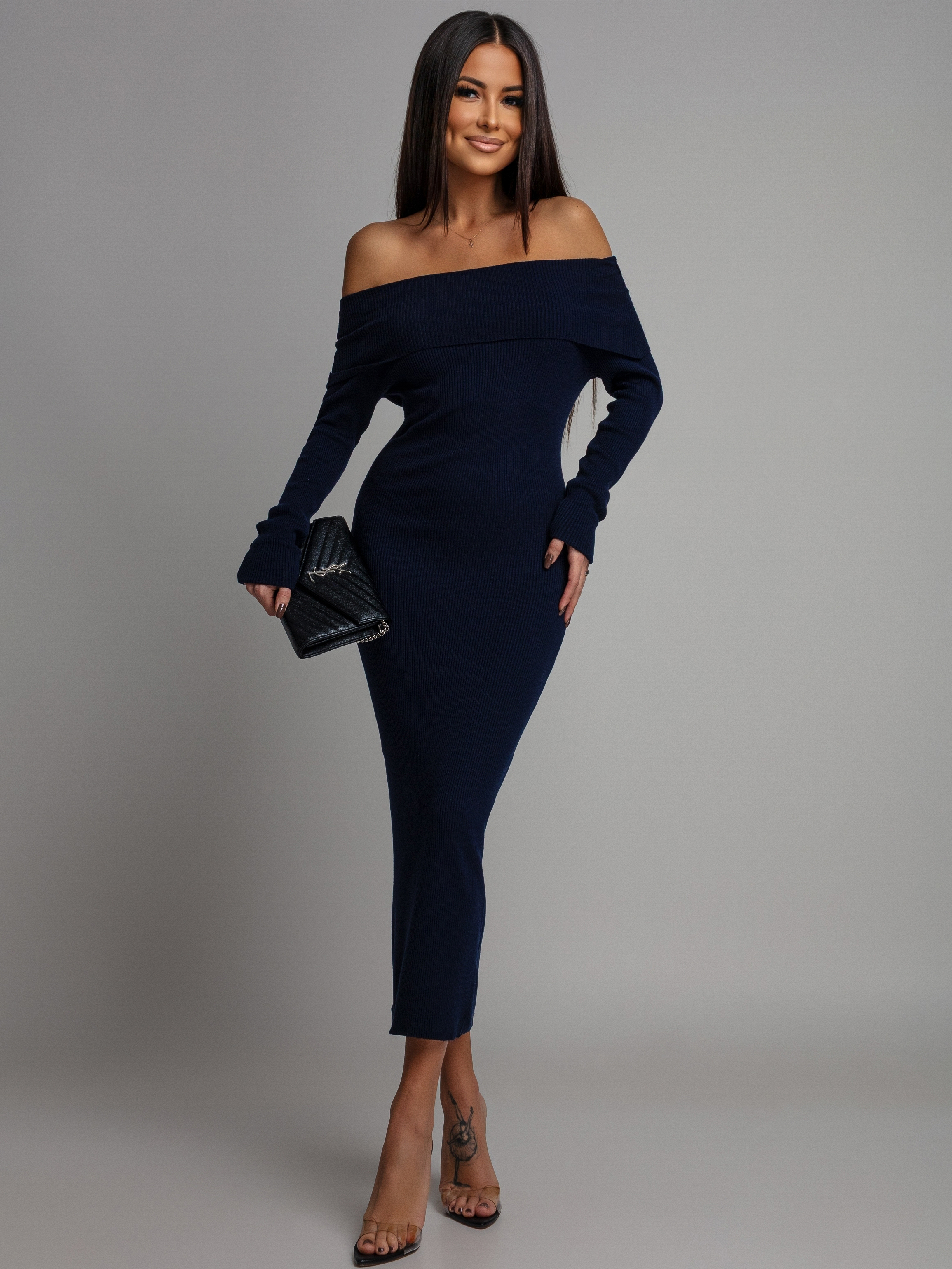 Sukienka hiszpanka midi na długi rękaw granatowa