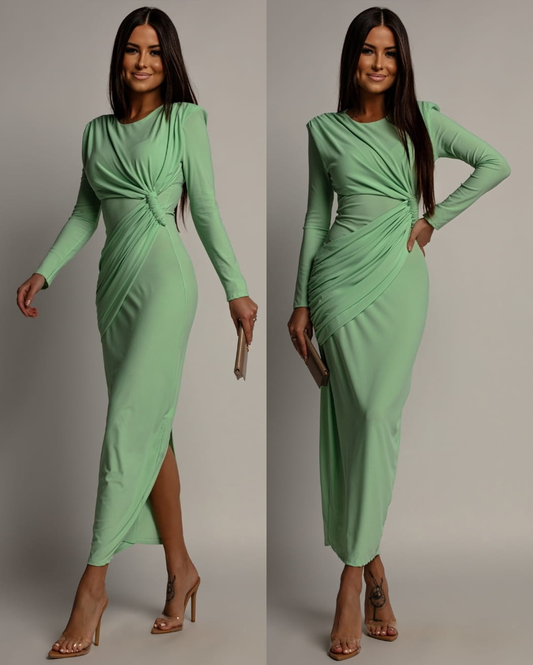 Sukienka midi z ozdobnym marszczeniem na biodrze zielona