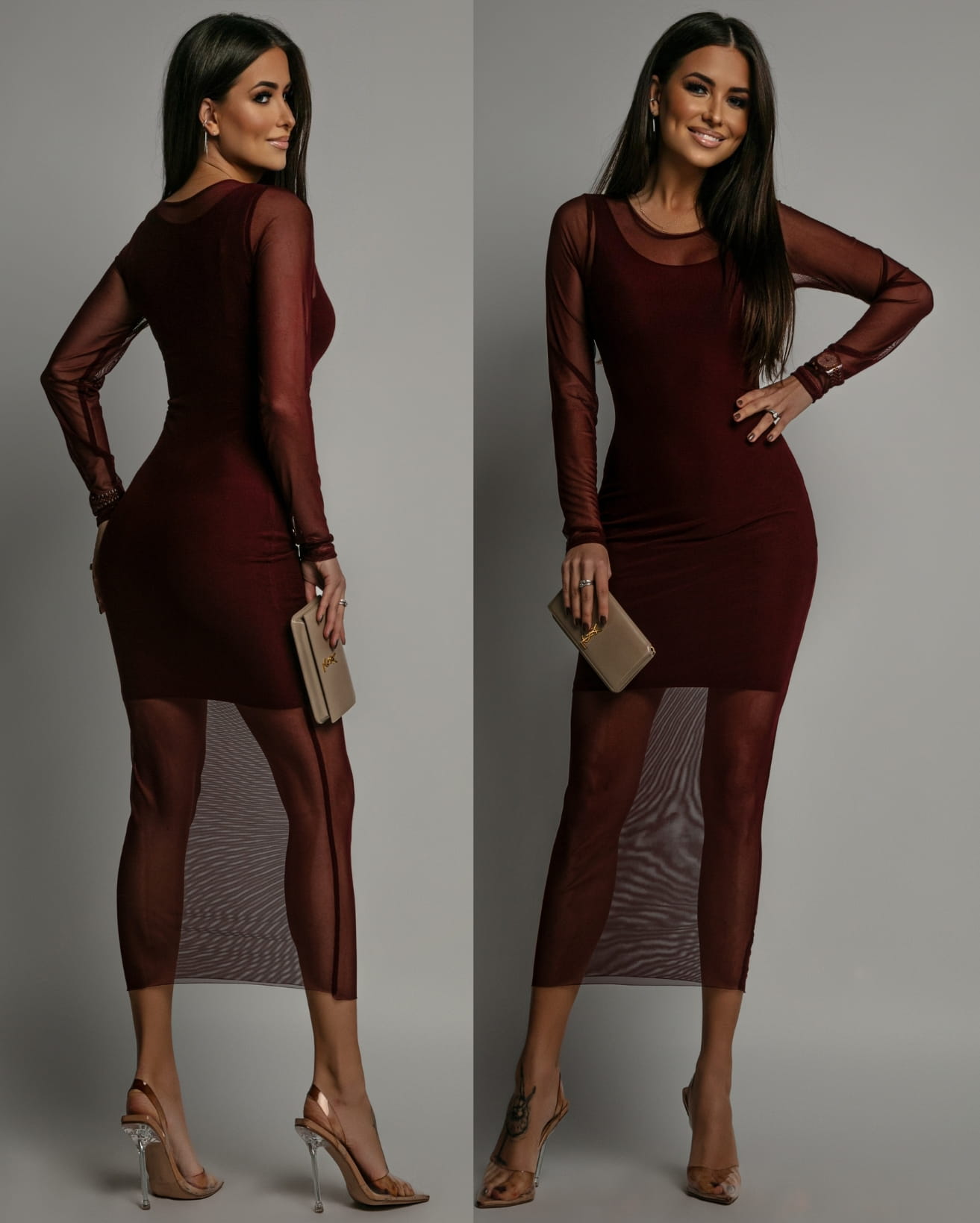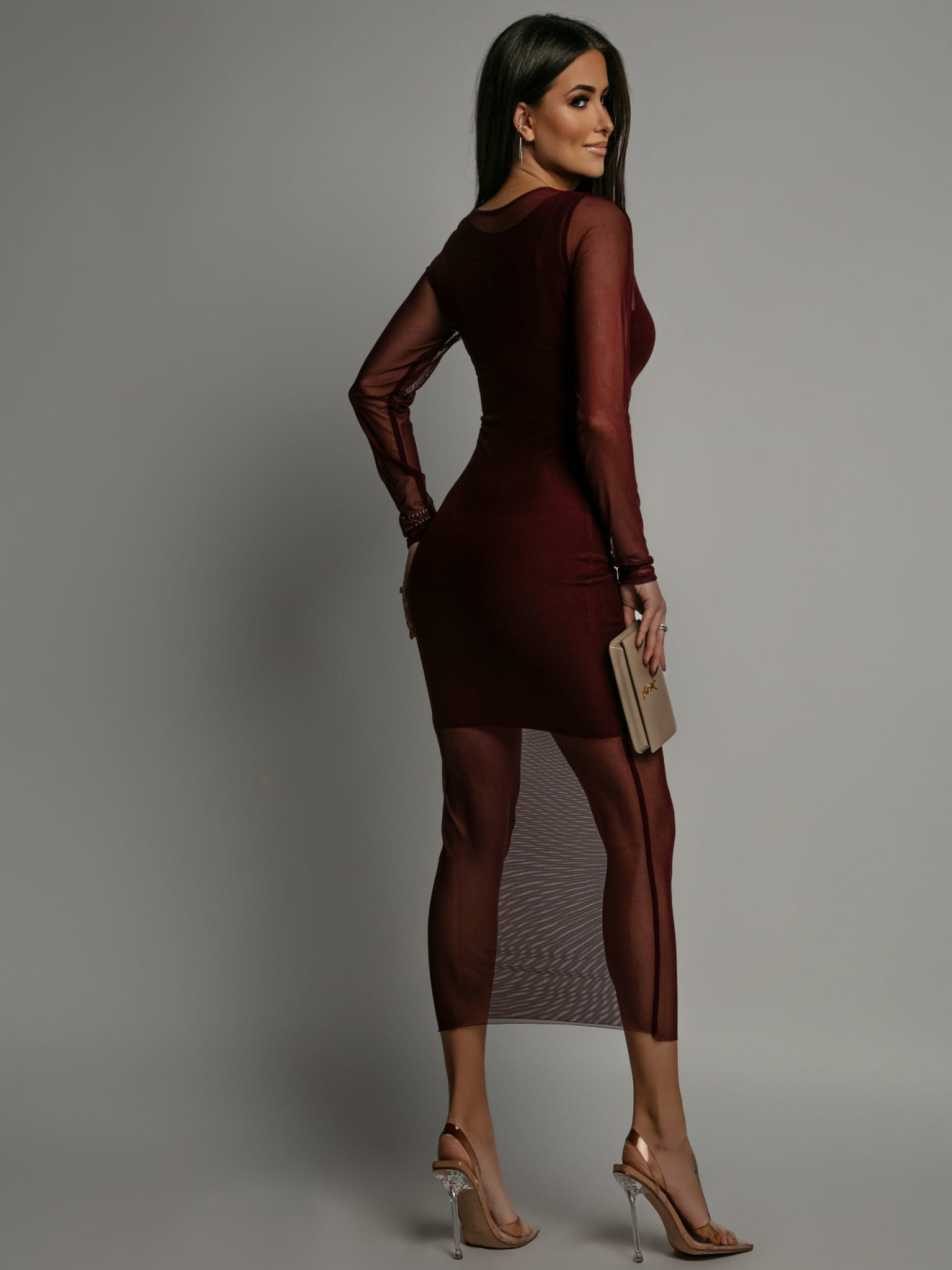 Sukienka z siateczki midi bordowa PREMIUM Polska produkcja