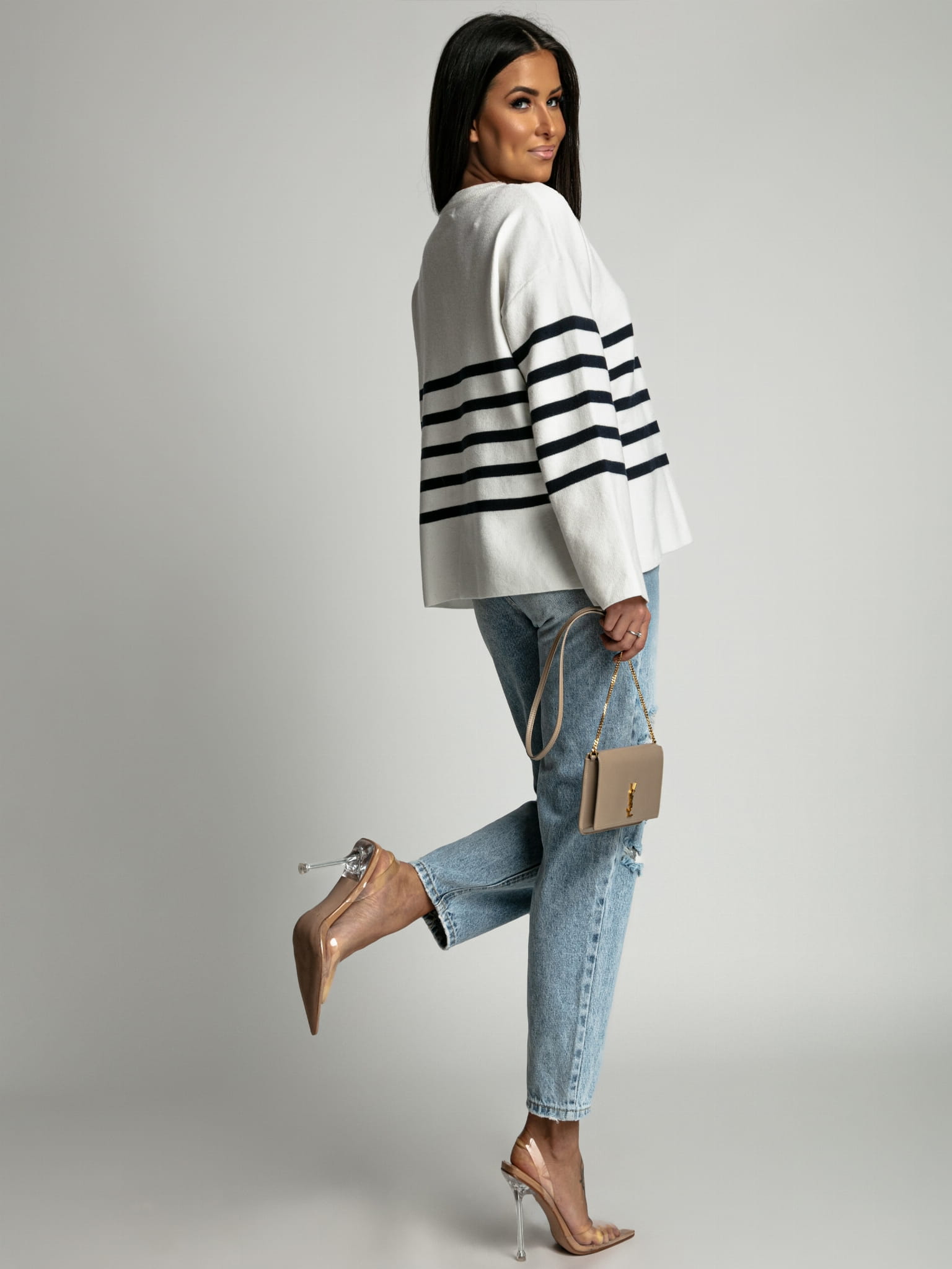 Sweterek oversize w pasy granatowe ecru PREMIUM